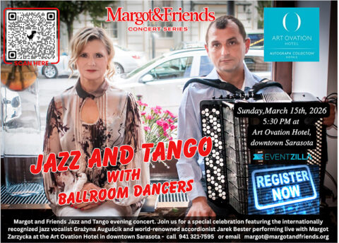 Margot & Friends invite you to a special evening concert at the wonderful downtown venue of Art Ovation Hotel: our Jazz & Tango performance. Experience a captivating blend of jazz, tango, and dance in an elegant setting.